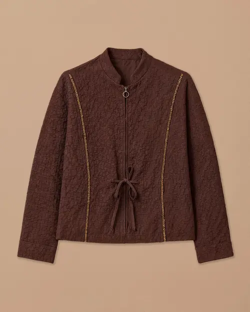 desenli fermuarlı gofre ceket