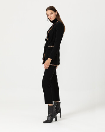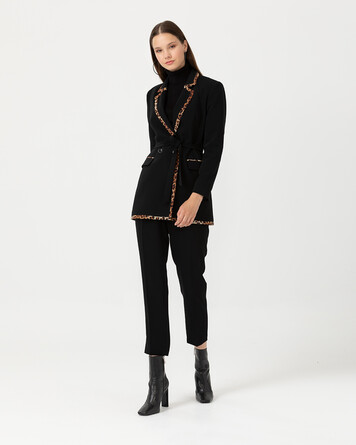 leopar detaylı beli kemerli ceket