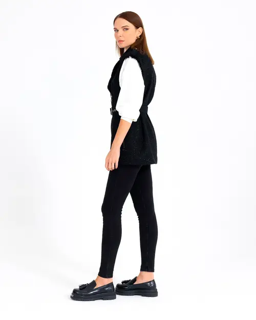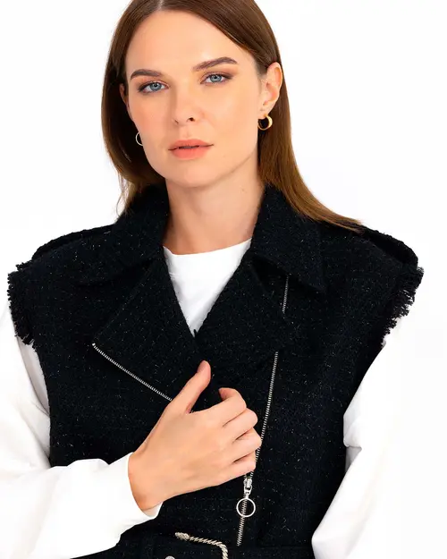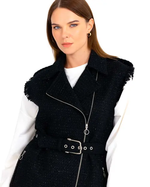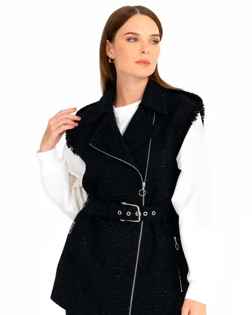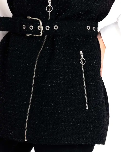 Tüvit kumaşın yükselen trendine ayak uyduruan ceket, belindeki kemeri ile şıklık kazanıyor. Fermuar detayına da yer verilen ceketi, kot pantolon ve rugan ayakkabılarınız ile kombinleyerek ofis stilinizi yansıtabilirsiniz.
