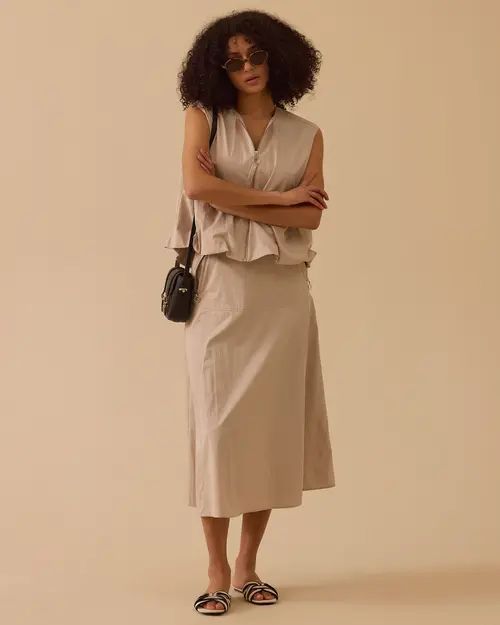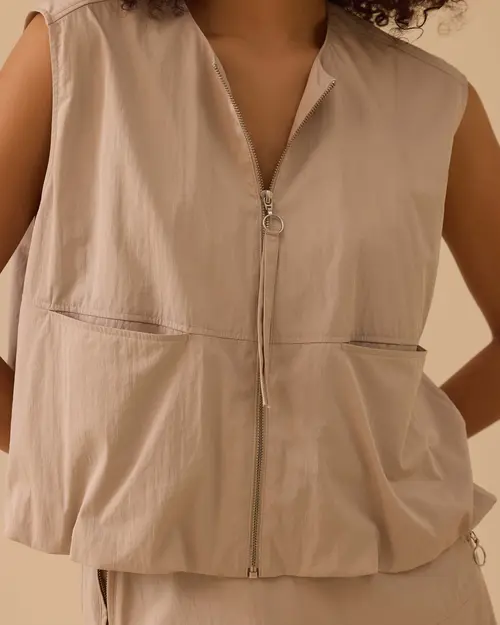 Fermuarlı Cep Detaylı Yelek, pratik fermuarı ve kullanışlı cepleriyle hem rahat hem fonksiyonel bir tasarım sunar.