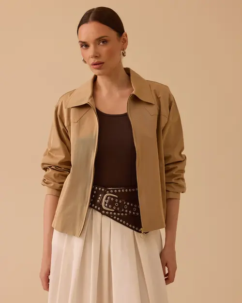 gömlek yaka fermuarlı ceket