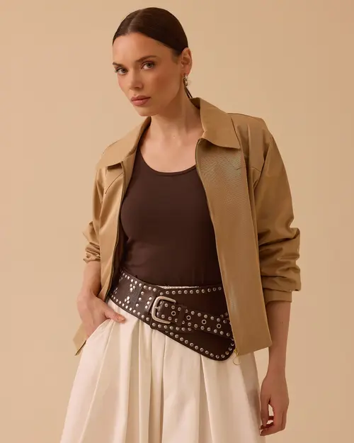 Gömlek Yaka Fermuarlı Ceket, klasik yaka detayı ve pratik fermuar tasarımıyla şık ve rahat bir kullanım sunar.