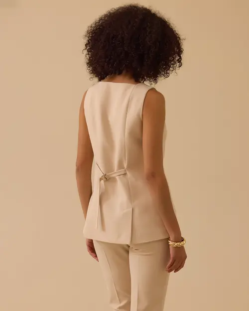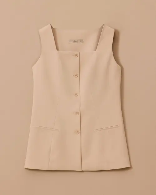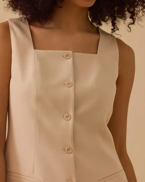 Kare Yaka Düğmeli Yelek, modern kare yaka ve şık düğme detaylarıyla zarif bir görünüm sunar.