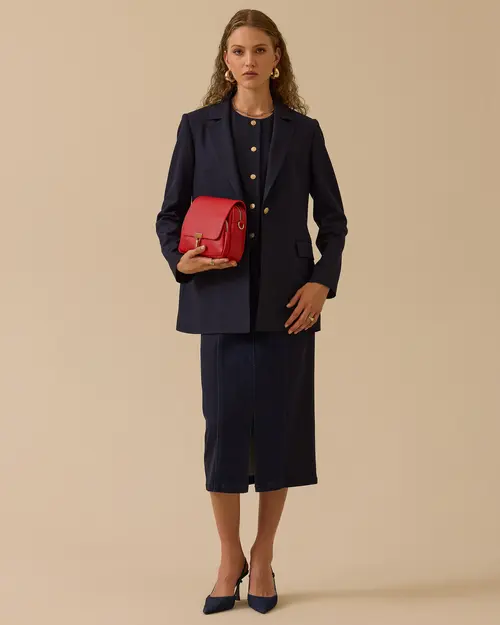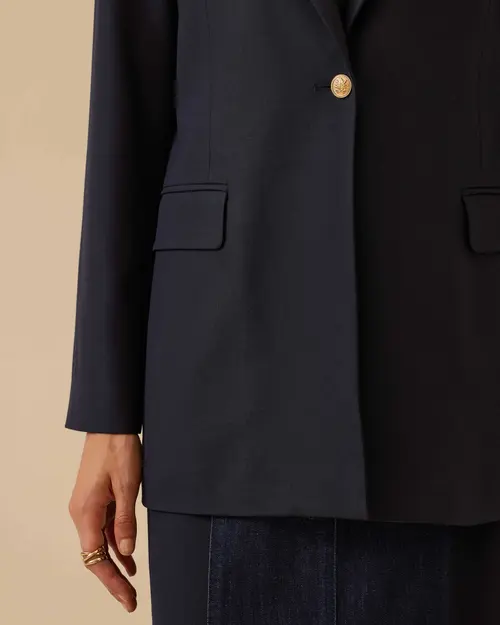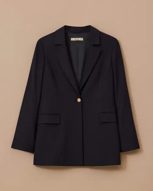 Tek Düğmeli Blazer Ceket, modern kalıbı ve sade tasarımıyla zamansız bir şıklık sunar.