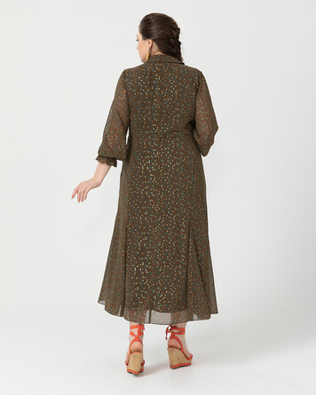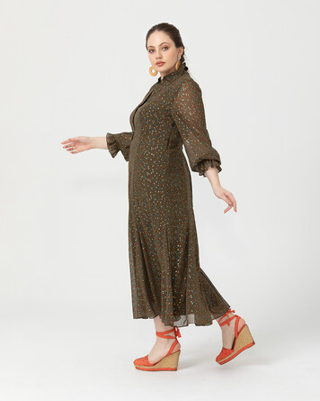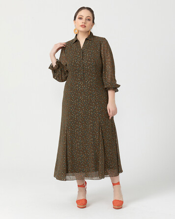 Çiçek deseni ile mevsimi karşılayan elbise, balon kol ve klasik gömlek yakası ile şıklığı yakalamanızı sağlıyor. Elbiseyi hasır detaylı aksesuarlarla tamamlayarak sıcak günleri karşılamaya hazırlanabilirsiniz.