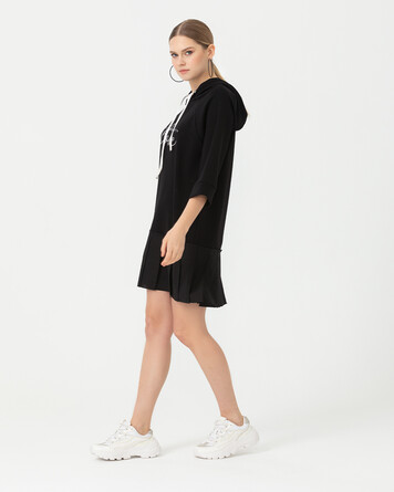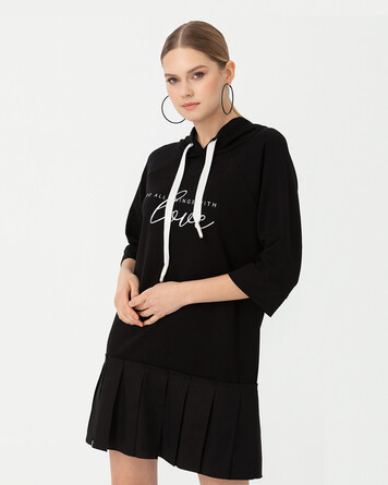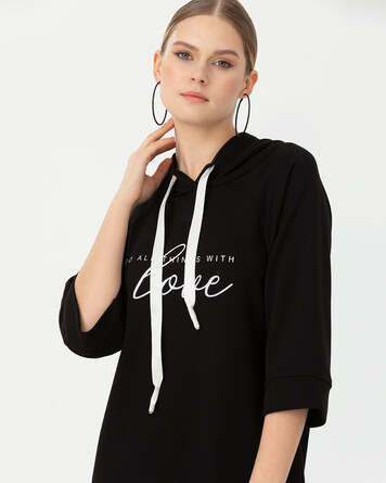 Modern ve spor stiller, slogan detaylar ile yenilikçi bir tavır kazanıyor. Kumaşı ile konforlu bir görünüm sunan elbiseyi, spor ayakkabılar ile kombinlerek, haftasonu rahatlığını şık detaylar ile vurgulayabilirsiniz.