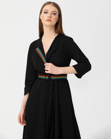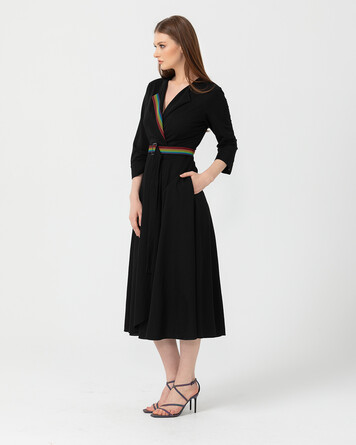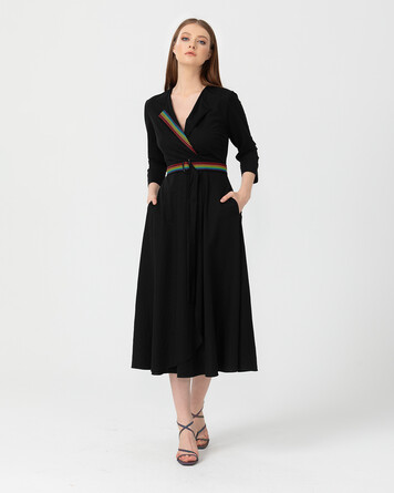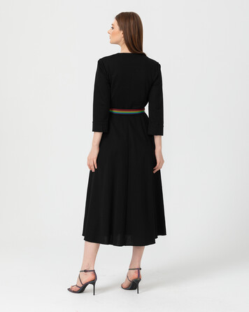 Kruvaze yakası ve bel kemeri ile feminen bir görünüme sahip elbiseyi topuklu sandaletler ile tamamlayabilir, ofis stilinden davet stiline adapte edebilirsiniz.