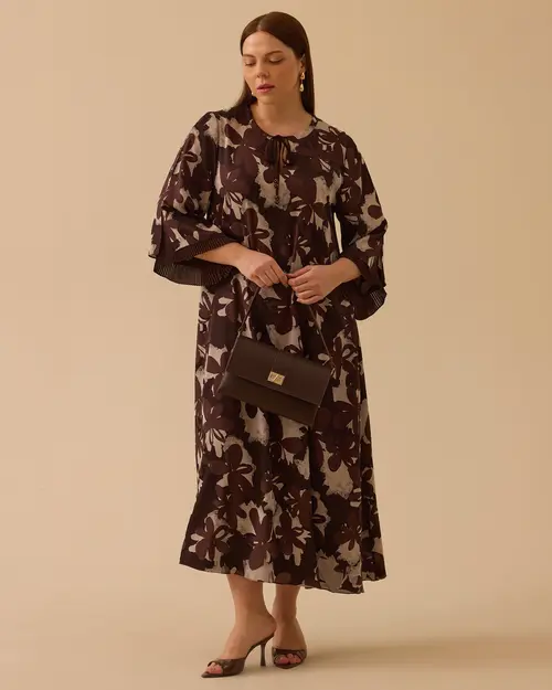 Büyük Beden Bağlama Detaylı Uzun Elbise, zarif bağlama detayı ve rahat kesimiyle şık bir duruş sunar.