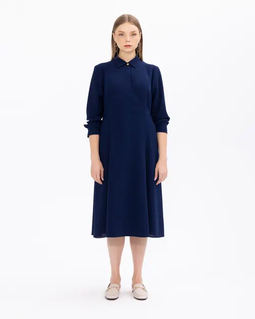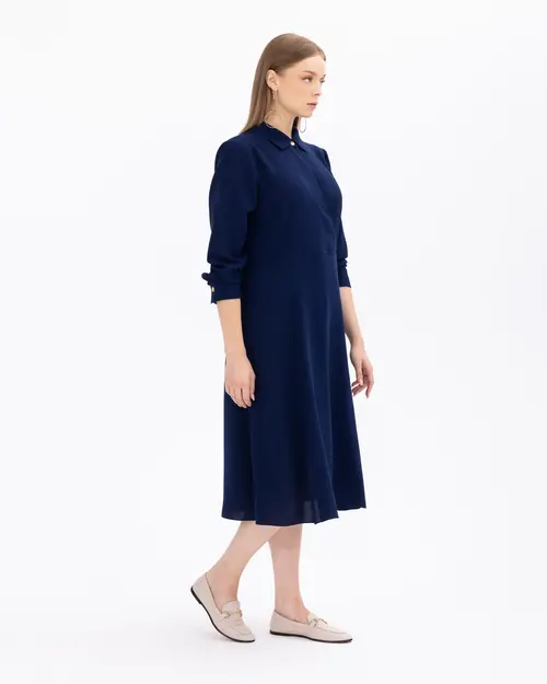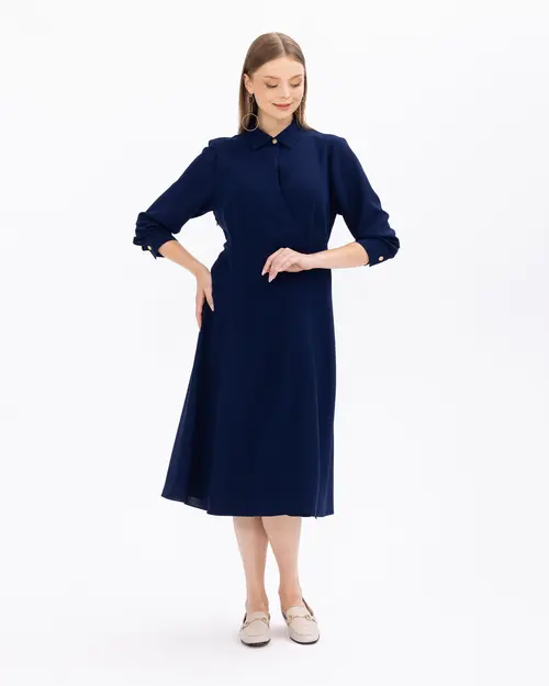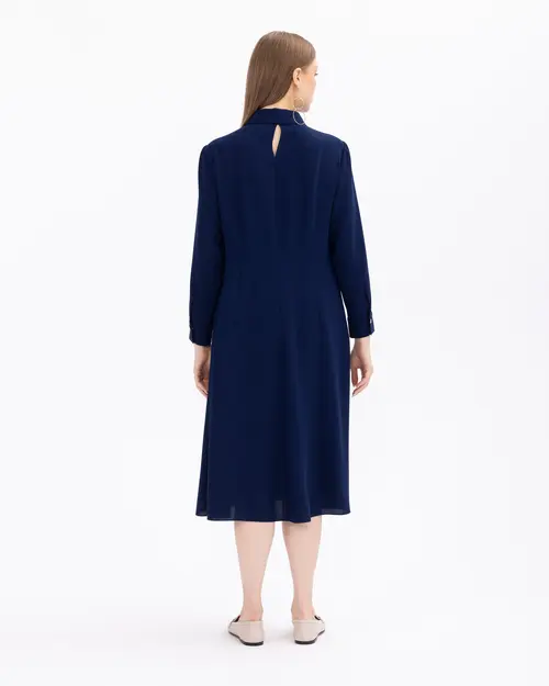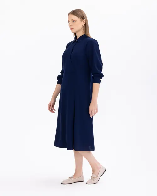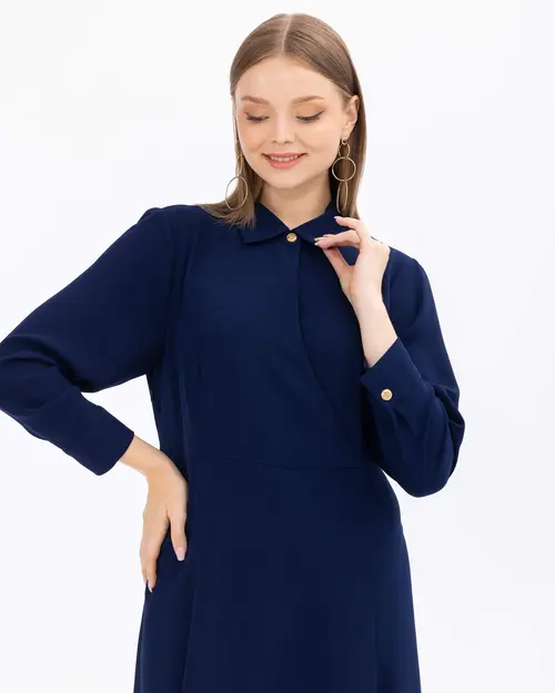 Büyük beden elbise, düğme detaylı gömlek yakasıyla şıklığı vurgular. Rahat kesimi ve zarif tasarımıyla gündelik ve özel durumlar için ideal bir seçenektir. Stil ve konfor bir arada sunar.