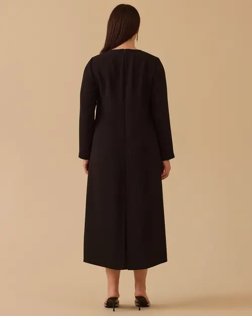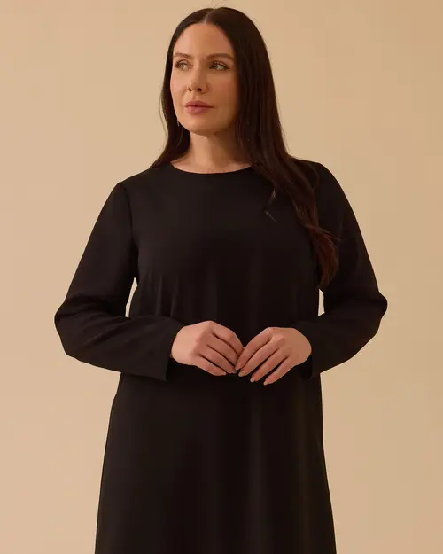 Büyük Beden Midi Basic Elbise, sade ve şık tasarımıyla rahat bir kullanım sunar, günlük kombinler için idealdir.