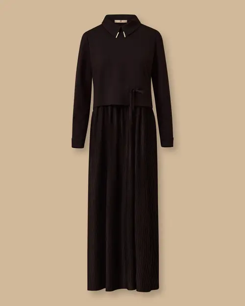 bel bağcıklı çift kumaşlı elbise