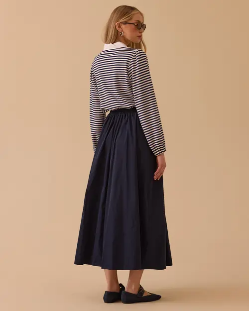 SCL bej çift parça görünümlü elbise, kombin yapma zahmetini ortadan kaldırarak tek parçada 'etek-gömlek' takımı şıklığı sunan inovatif bir tasarımdır. Modest (muhafazakar) giyim çizgisine uygun olarak tasarlanan bu model, 138 cm maksi boyu ve uzun kollu gömlek yaka üst detayıyla ölçülü bir silüet yaratır. Belindeki bağcık ve lastik detayı, çift parça (katmanlı) illüzyonunu güçlendirirken aynı zamanda belinize göre kusursuzca ayarlanabilmesine olanak tanır. A-kesim eteği ile alt bedeni rahat ettirir, %100 polyester kumaşı sayesinde kırışmaya dirençlidir. Doğal bej tonuyla toplantılardan özel buluşmalara kadar zahmetsiz ve rafine bir şıklık yakalamanızı sağlar.