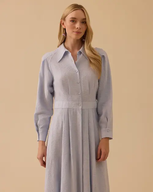 desenli pileli elbise