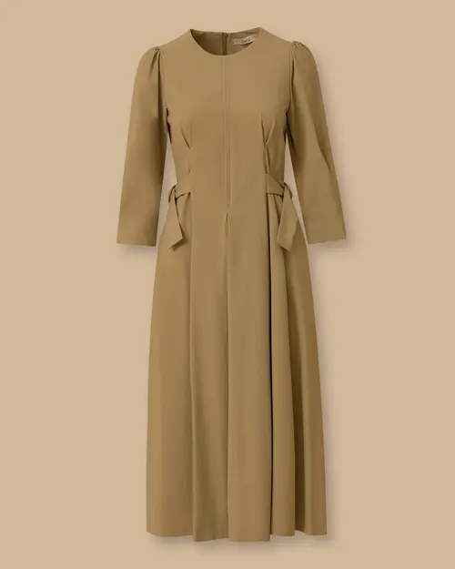 Bel Ayarlamalı Midi Elbise, ayarlanabilir bel detayı ve midi boy kesimiyle şık, rahat ve feminen bir görünüm sunar.
