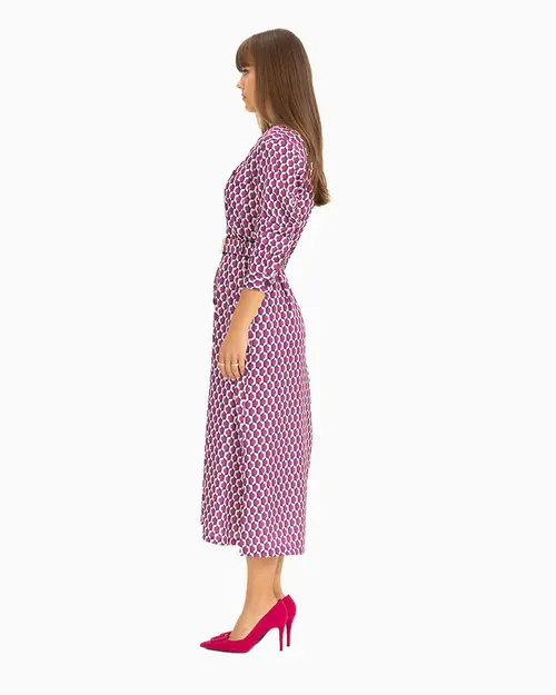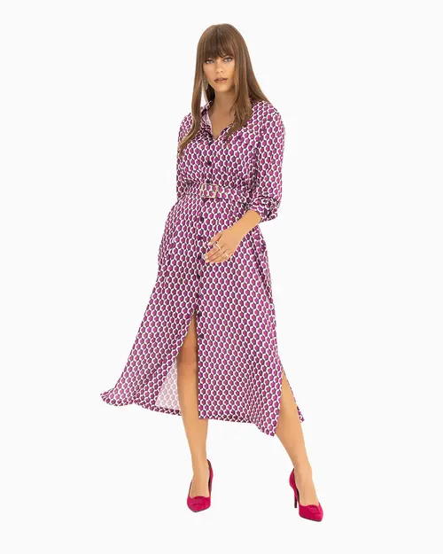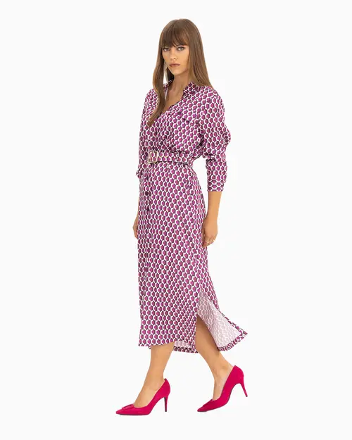 Yırtmaç detayı ve belindeki kemeriyle sokak ve ofis stiline enerji katan elbise, midi boyuyla fark yaratıyor. Elbiseyi, topuklu ayakbılarınızla kombinleyerek, ilham veren bir şıklığa kavuşabilirsiniz.