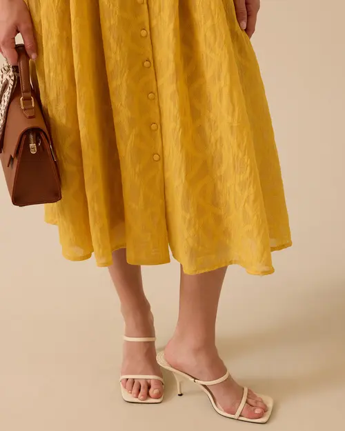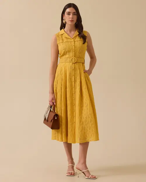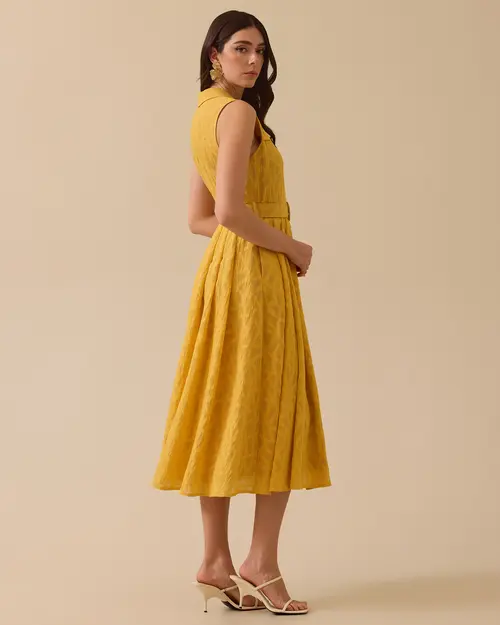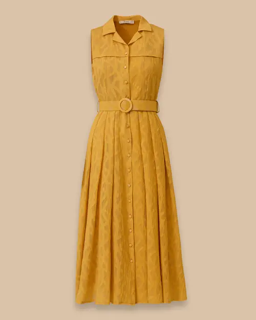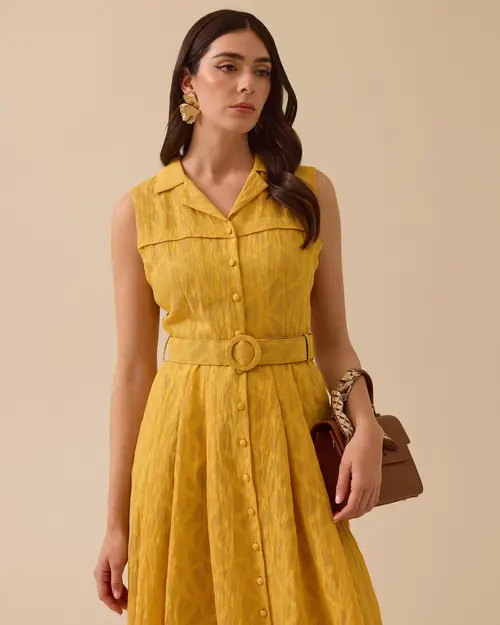 Desenli Kemer Detaylı Kolsuz Midi Elbise, şık deseni ve beldeki kemer detayıyla zarif bir stil sunar. Rahat kesimiyle günlük şıklığınızı tamamlar.