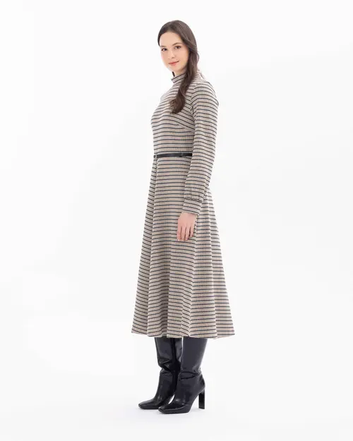 Desenli kemerli midi boy elbise, zarif ve şık bir görünüm sunan bir giyim parçasıdır. Midi boyu ile hem rahat hem de şık bir seçenektir. Elbisenin bel kısmında bulunan kemer, vücudu belirginleştirir ve zarif bir şekilde vurgular. Bu elbise, özel etkinliklerden günlük giyime kadar birçok farklı durumda kullanılabilir.