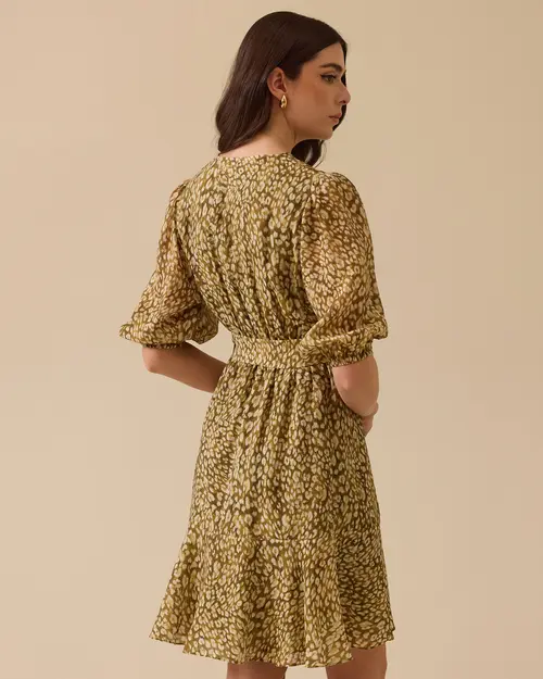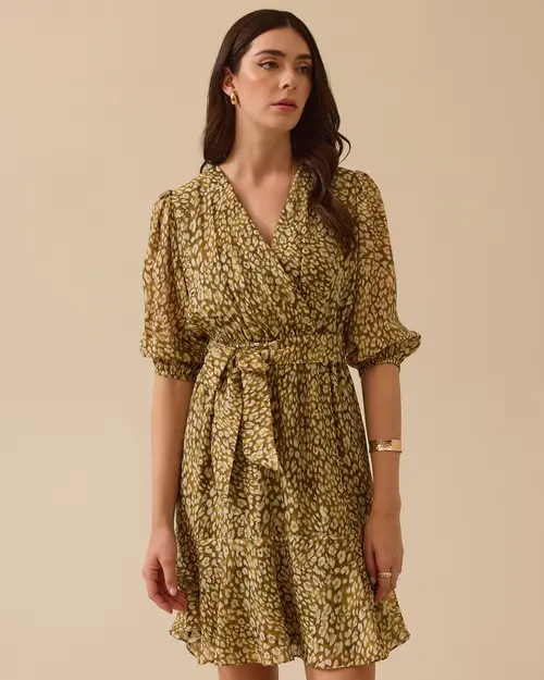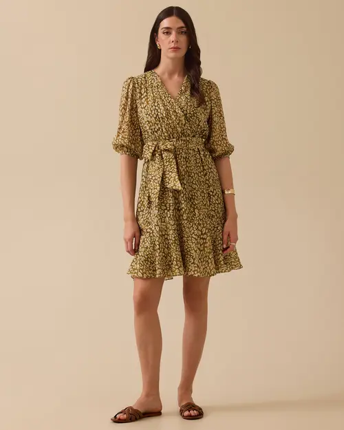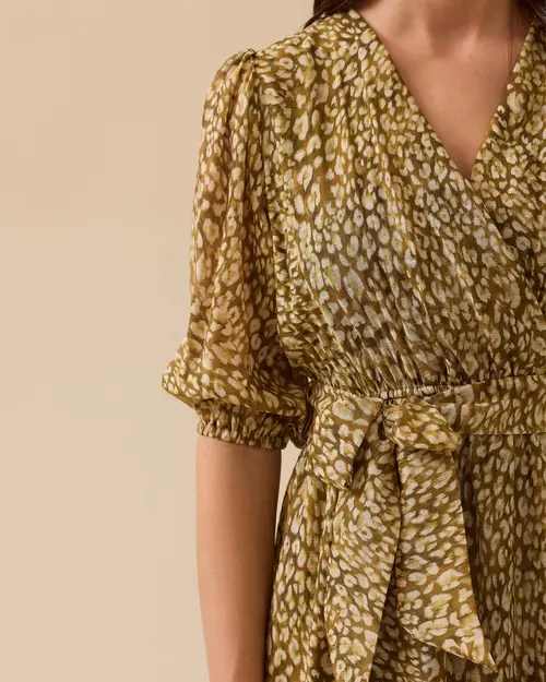 Desenli Kuşak Detaylı Elbise, hafif kumaşı ve rahat kesimiyle gün boyu konfor sunar, fırfırlı eteğiyle feminen bir dokunuş katar.