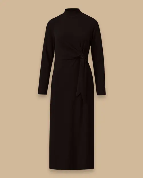 dik yaka bağlama detaylı midi elbise
