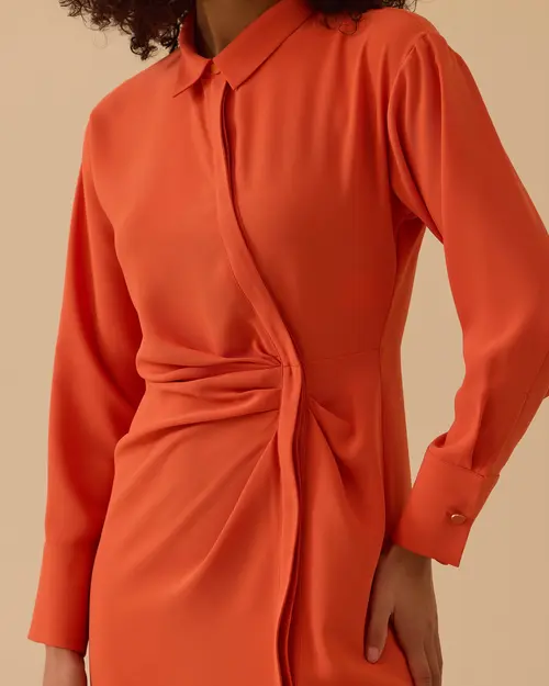 gömlek yaka drapeli elbise