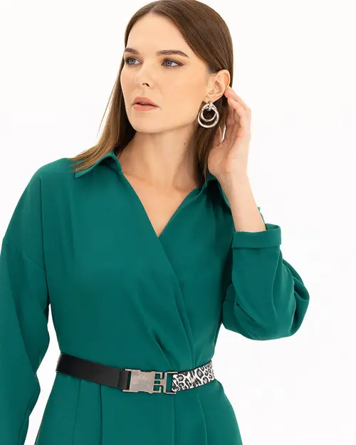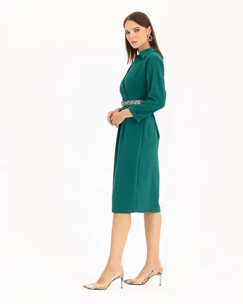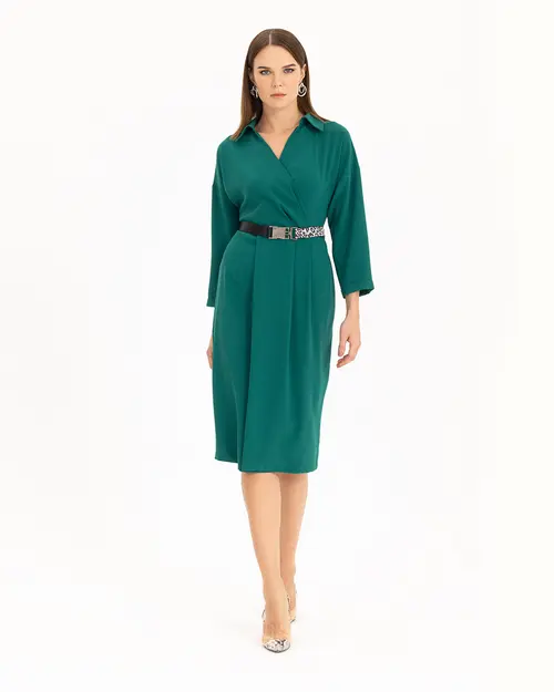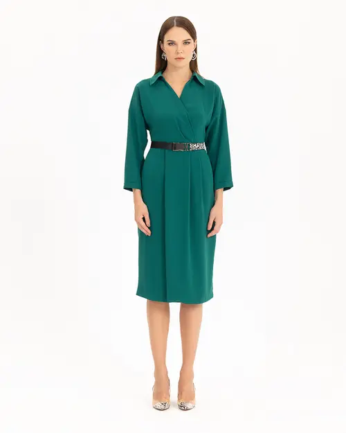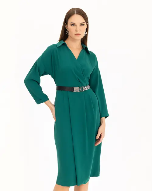 Kemerli Kruvaze Yakalı Elbise