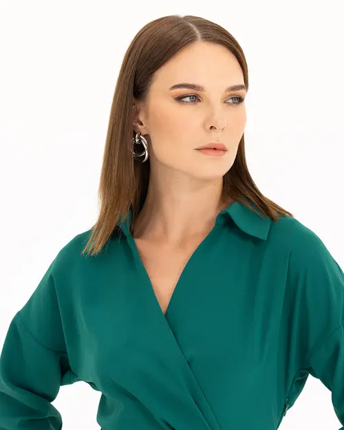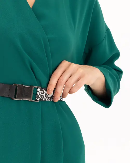 kemerli kruvaze yakalı elbise