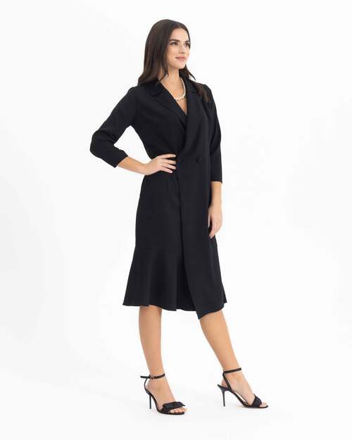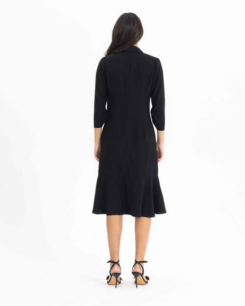 Kruvaze yakası ile sezon trendlerine göz kırpan elbise, etek kısmındaki volan detayı ile romantik bir stil yansıtıyor. Elbiseyi, stilettolar ile tamamlayabilir, tarzınızla gözleri üzerinizde toplayabilirsiniz.