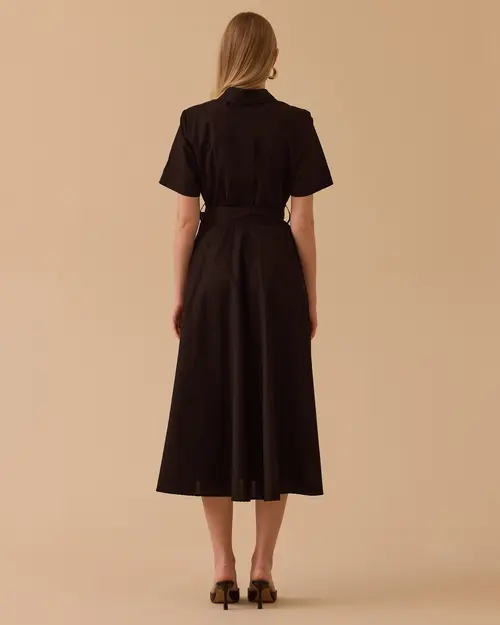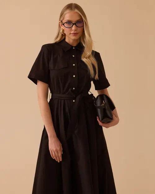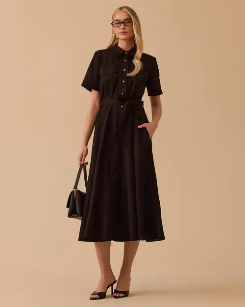 Kuşaklı Cepli Kısa Kollu Elbise, bel vurgulayan kuşağı ve kullanışlı cepleriyle hem şık hem rahat bir stil sunar.