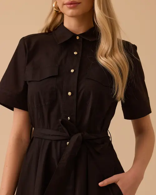Kuşaklı Cepli Kısa Kollu Elbise