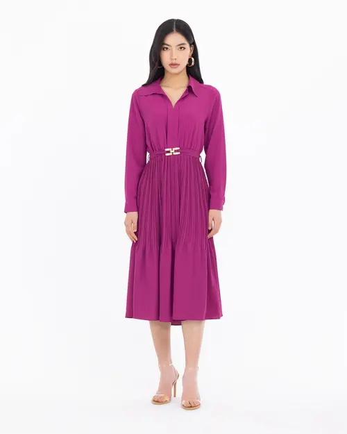 Pliseli Gömlek Yaka Bel Detaylı Elbise, feminen ve şık bir görünüm için ideal bir seçim oluşturuyor. Pliseli kumaşı hareketli bir görünüm sağlarken gömlek yaka detayıyla da modern bir tarz sunuyor. Bel detayında bulunan ince zincir detayıyla da zarif bir şıklık kazanan elbiseyi özel günlerinizde topuklu ayakkabılarınızla tamamlayabilirsiniz.