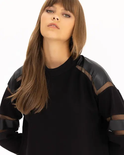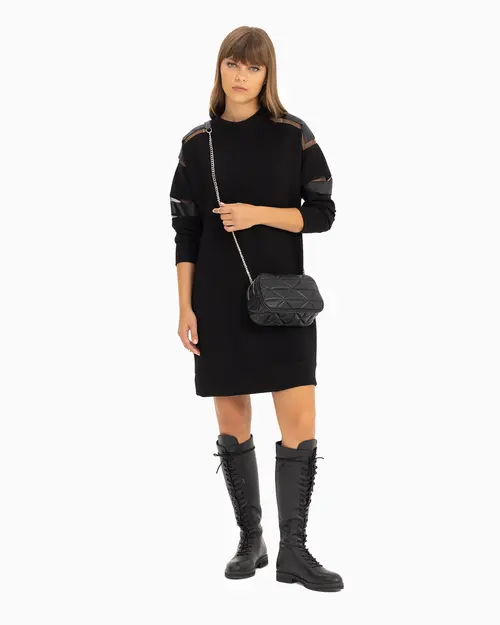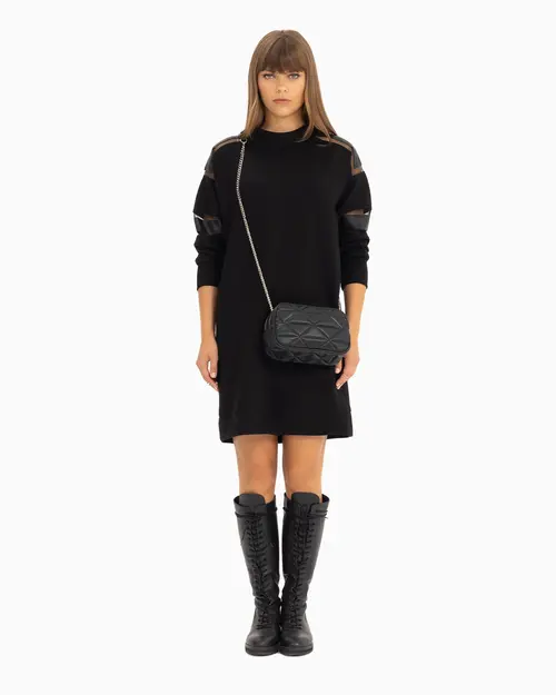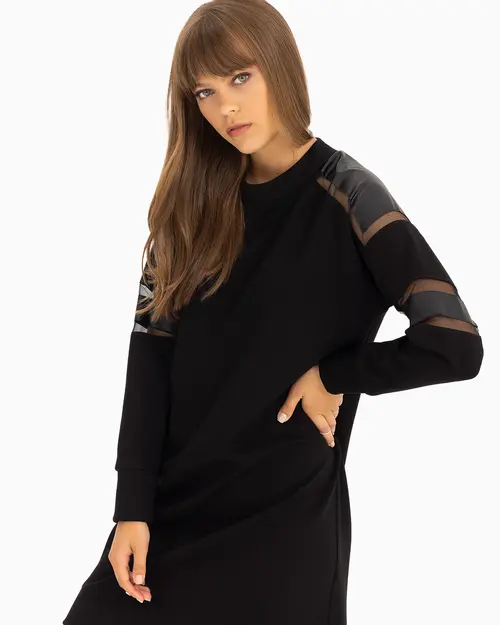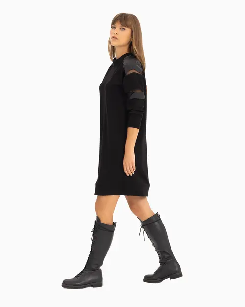 Transparan detayıyla farklılaşan elbise, midi boyuyla şıklık kazanıyor. Örme kumaşıyla da kış mevsiminde konforlu bir kullanım elbiseyi, botlarınız ile tamamlayarak tek parçada şıklık kazanabilirsiniz.