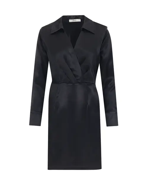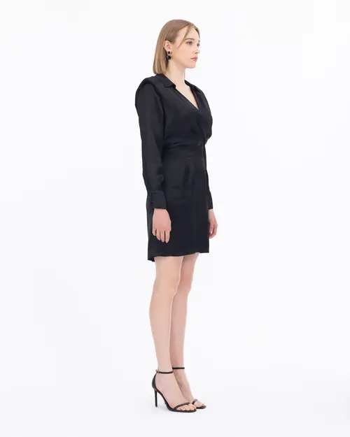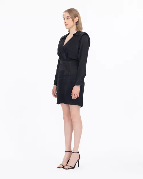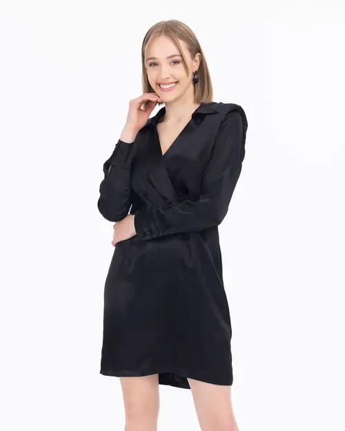 Vatkalı Kruvaze Yaka Saten Dokuma Elbise