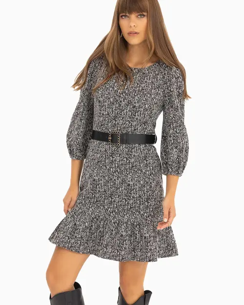 Eteklerinin volanlı oluşuyla enerjik bir görünüm yansıtan elbise, truvakar koluyla da zamansız bir stil kazanıyor. Elbiseyi, botlarınızla tamamlayarak göz alıcı bir şıklık kazanabilirsiniz.