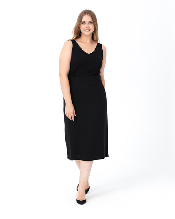Diz altı formu ile şıklık kazanan etek, akışkan kumaşı ile konforlu bir alternatif oluyor. Eteği, Galaxi gömlekler ile kombinleyerek, ofis stinize adapte edebilirsiniz.