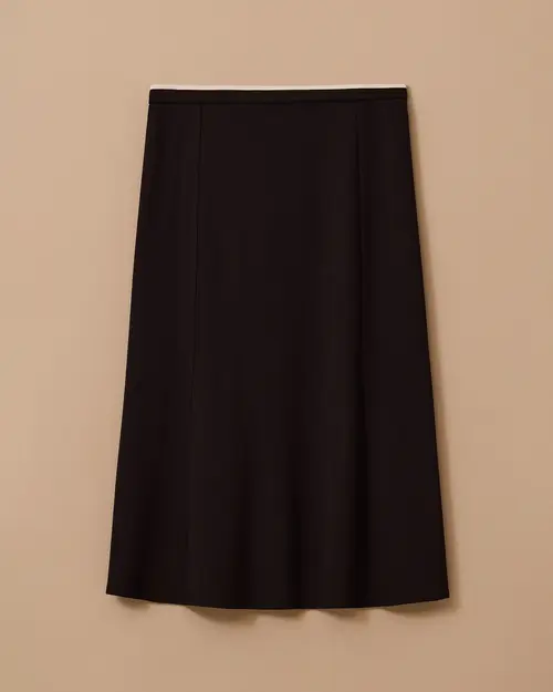 Büyük Beden Beli Biye Detaylı Midi Etek, sade tasarımıyla şık ve zarif kombinler oluşturur.