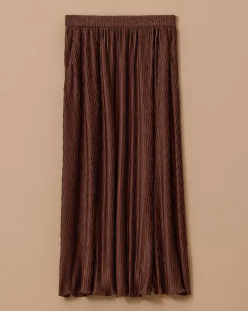 Dokulu Midi Etek, hafif kumaşı ve modern dokusu ile günlük şıklık ve konfor sağlar.