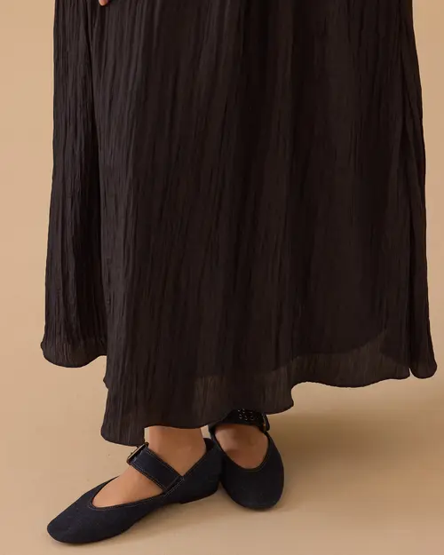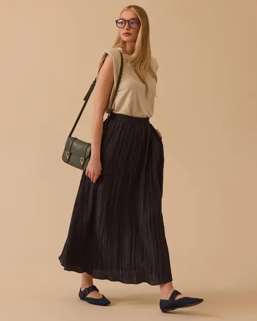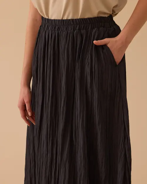 Elastik Bel Uzun Etek, konforlu elastik beli ve akıcı formuyla gün boyu rahat ve şık bir kullanım sunar.
