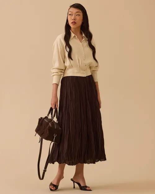 Kırışık Dokulu Etek, modern kırışık dokusu ve rahat kesimiyle gün boyu konforlu ve şık bir kullanım sunar.
