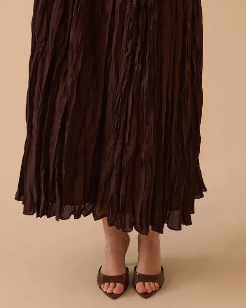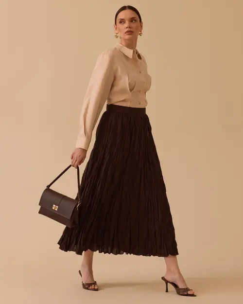 Kırışık Dokulu Etek, modern kırışık dokusu ve rahat kesimiyle gün boyu konforlu ve şık bir kullanım sunar.