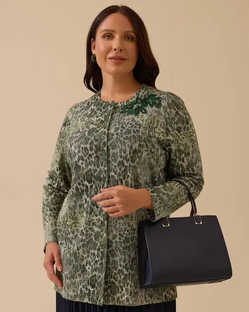Büyük Beden Desenli Nakış Detaylı Gömlek, zarif nakışı ve rahat kesimiyle şık bir görünüm sunar.