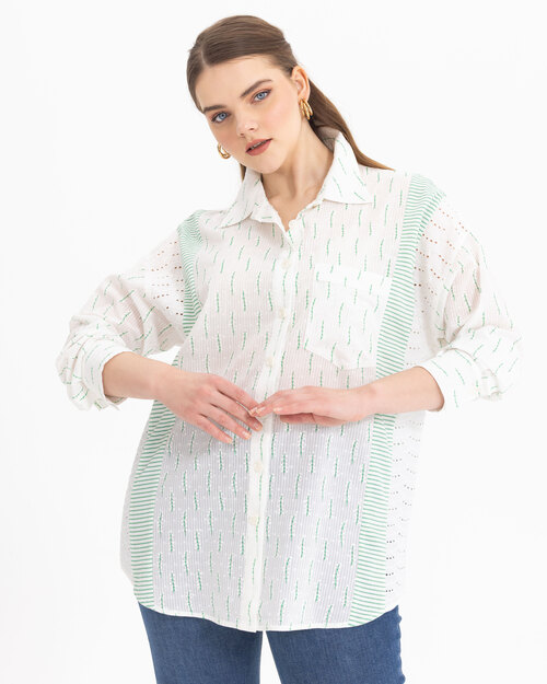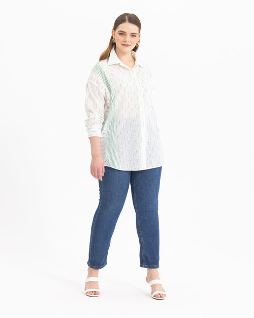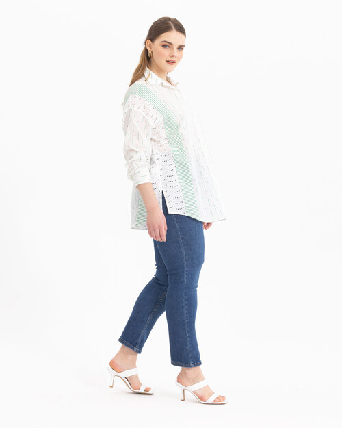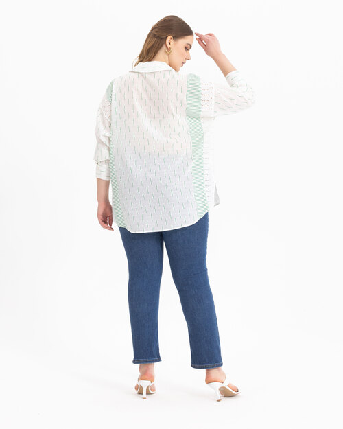Fisto detaylı geçişleri ve deseni ile dikkat çeken gömlek, dokusu ile konfor alanını genişletiyor. Gömleği, jean pantolonlar üzerinde kombinlemeyi deneyebilirsiniz.