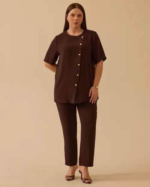 büyük beden kısa kollu asimetrik gömlek