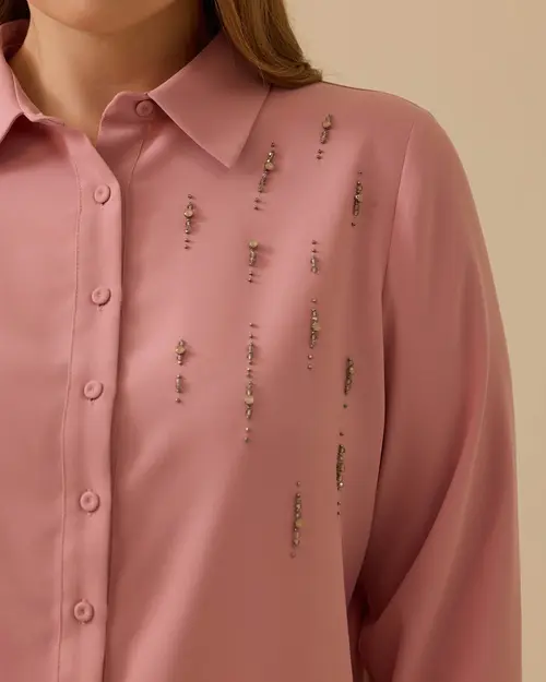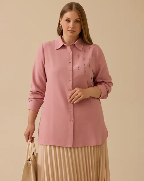 Büyük Beden Taş Detaylı Gömlek, modern detaylarıyla rahat ve günlük kombinlere uygun.