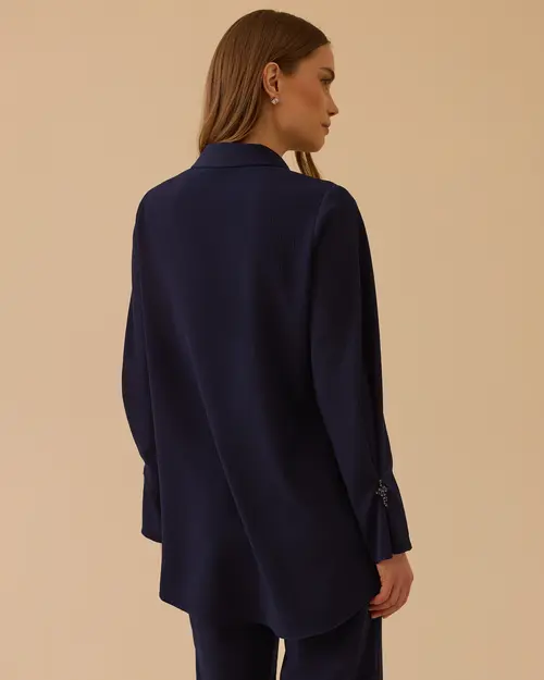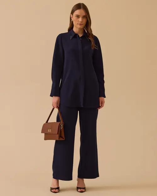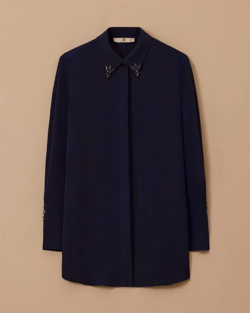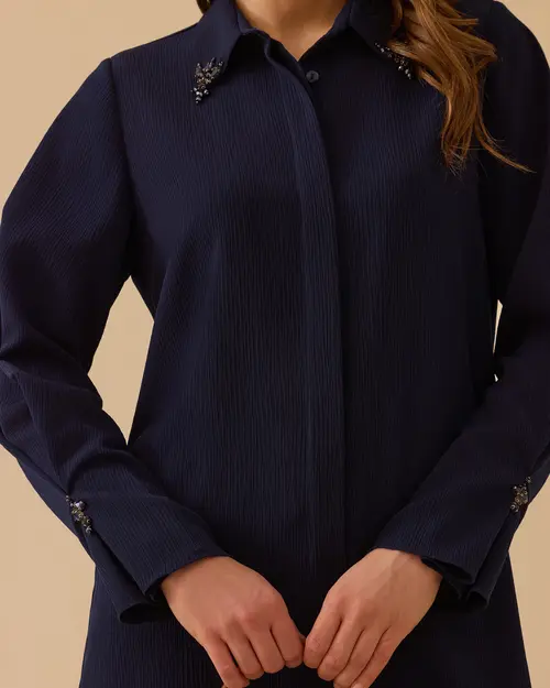 Taş Detaylı Gömlek, zarif taş süslemeleri ve modern kesimiyle şıklığı ön plana çıkarır.