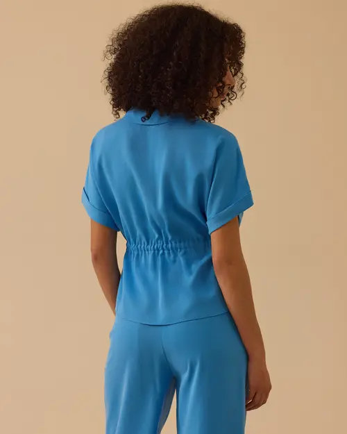Beli lastikli cep detaylı gömlek, gün boyu konfor sunar, modern duruşuyla ofis ve günlük kombinlere uyum sağlar.