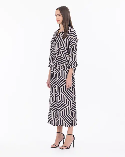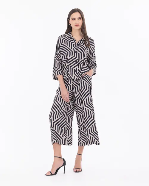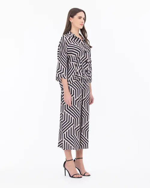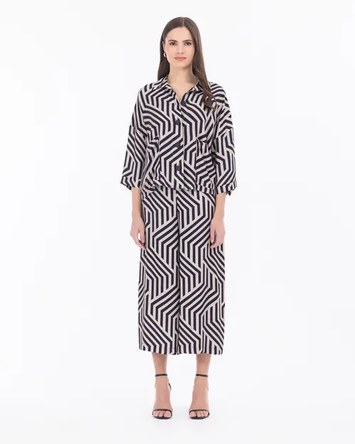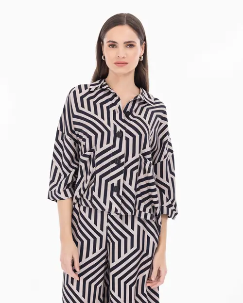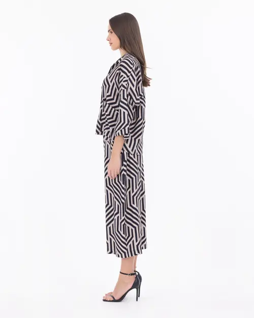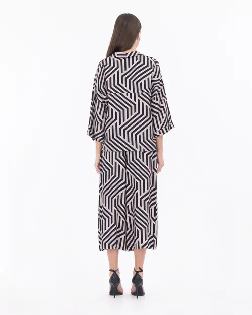 Deseni ile dikkat çeken gömlek, rahat kesimi ve bel boyu ile sezon trendlerine göz kırpıyor. Gömleği aynı desene sahip pantolonu ile tamamlayabilir, takım şıklığı yansıtabilirsiniz.