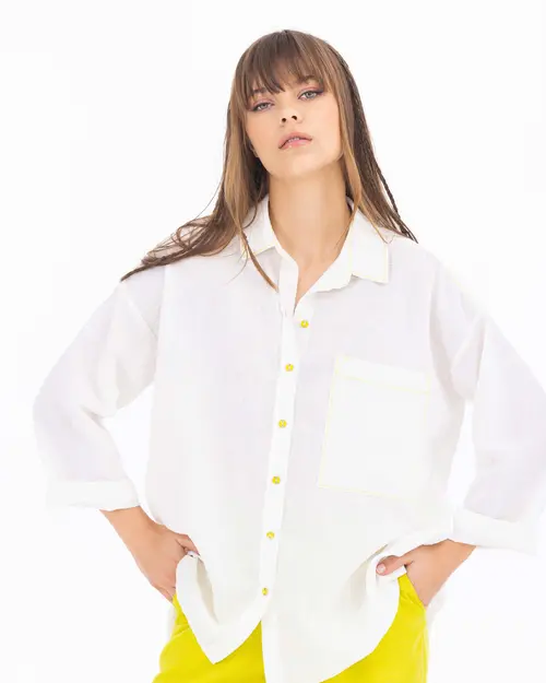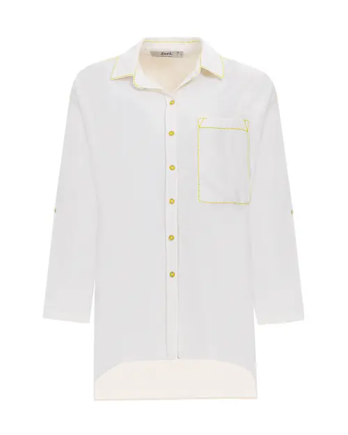 Dikiş detayları ve asimetrik kesimiyle dikkat çeken gömlek, modern bir tarzı yansıtıyor. Günlük görünümlerinize farklı tarzıyla adapte olan gömleği, pantolon ve spor ayakkabılarınızla bir araya getirebilirsiniz.