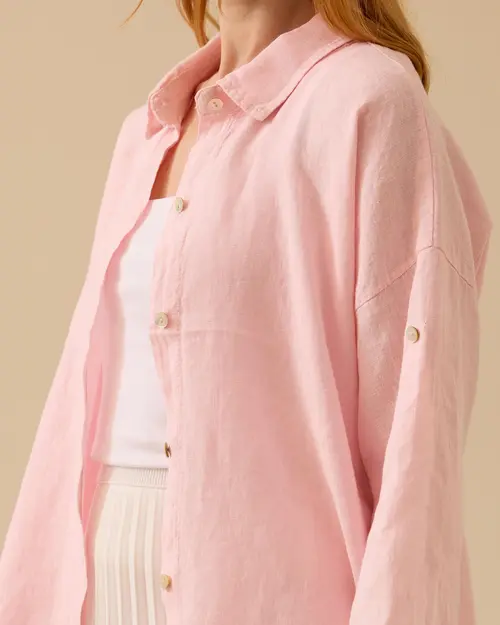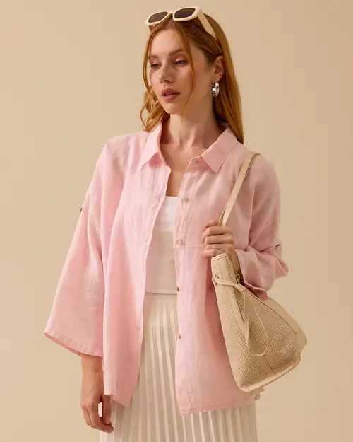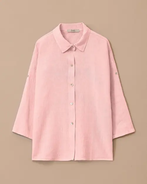 Katlanabilir Kollu Keten Gömlek, pratik kol detayıyla günlük stilinize uyum sağlar.