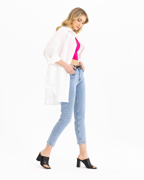 Basic oversize gömlekler bu sezon da gardırobunuzun anahtar parçası olacak! Gömleği jean pantolonlar ile kombinleyebilir, sneakerlar ile tamamlayabilirsiniz.