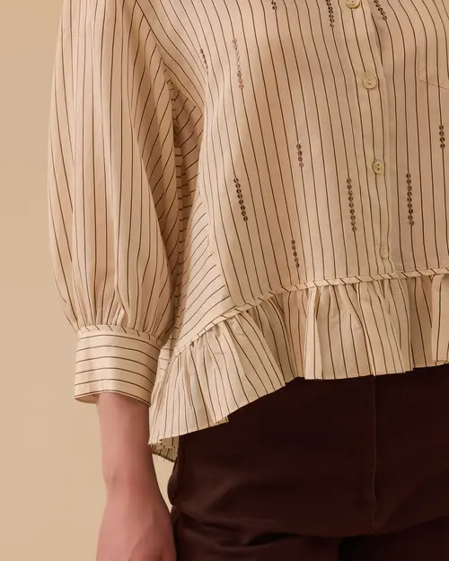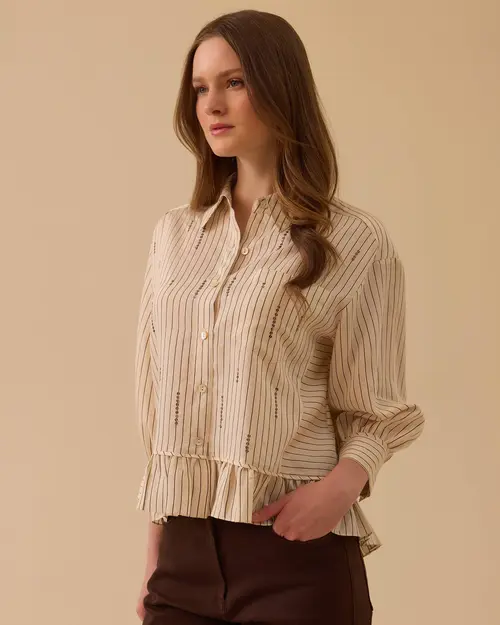 pul detaylı fırfırlı çizgili gömlek